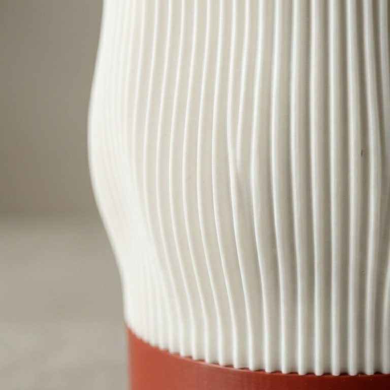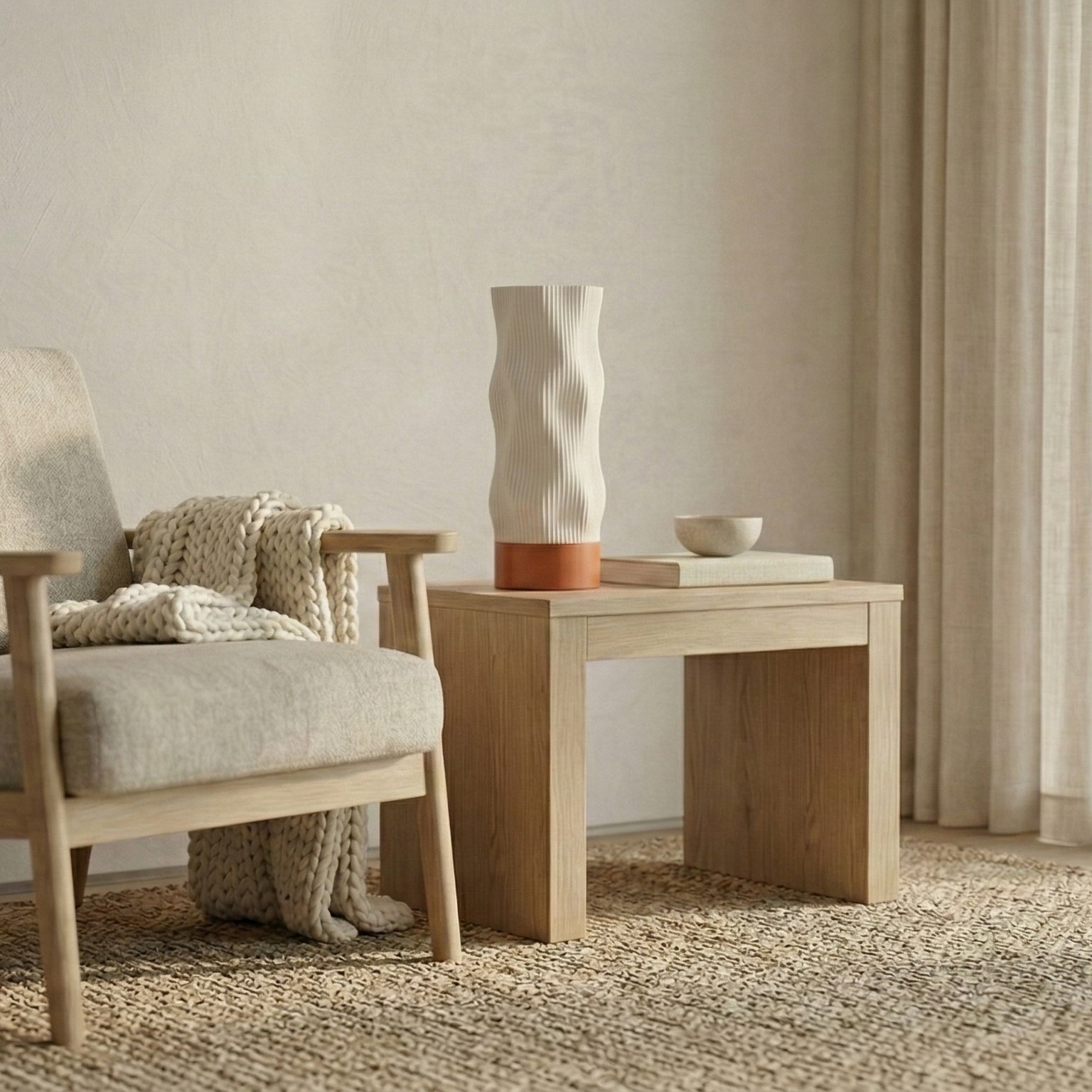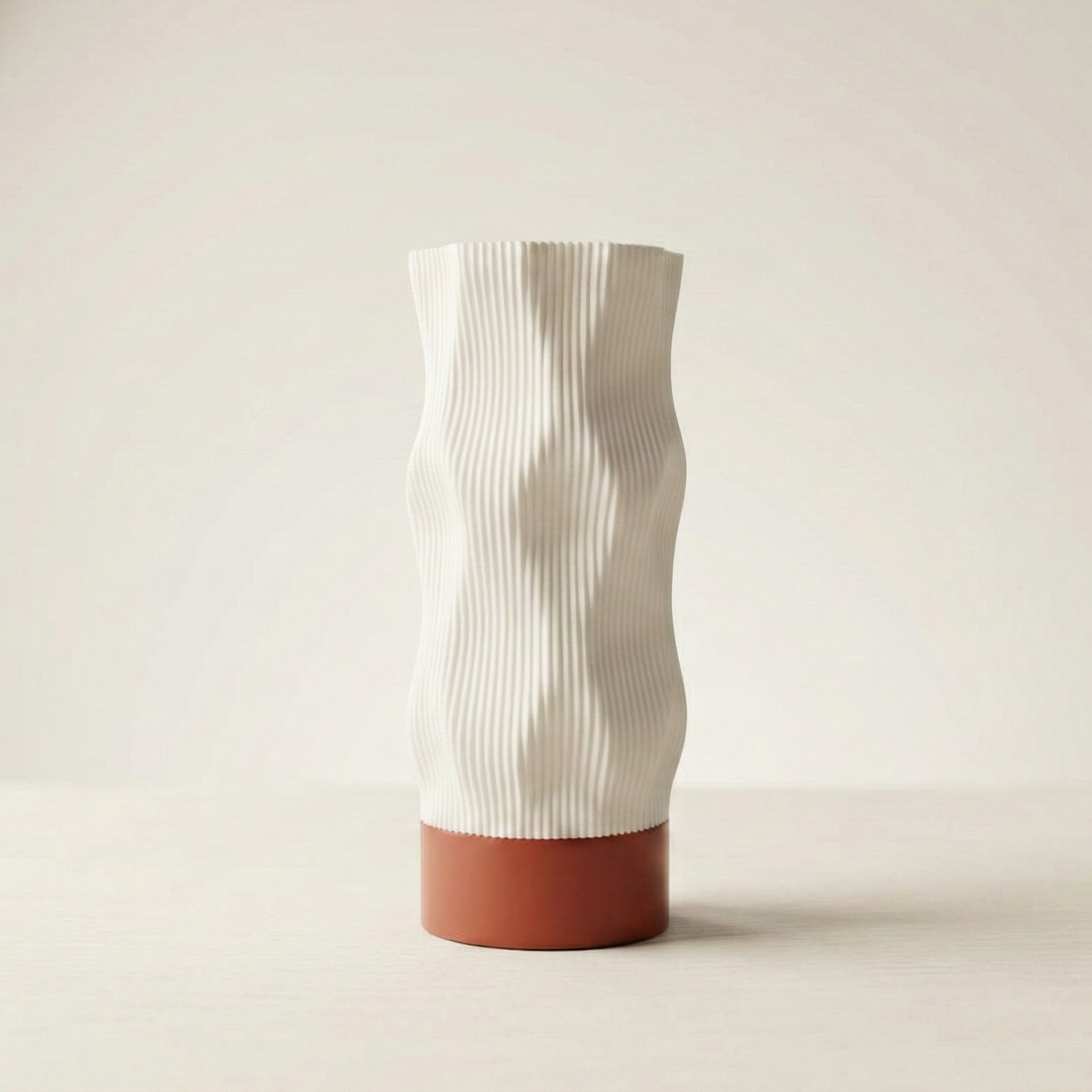 Sa silhouette ondulée et sa base en rouge flame créent un équilibre subtil entre design contemporain et atmosphère chaleureuse.